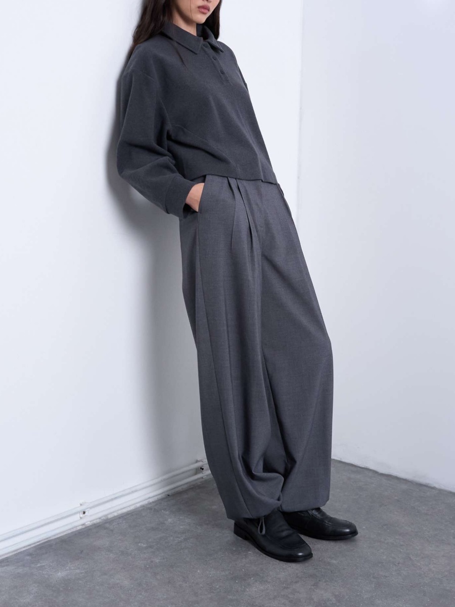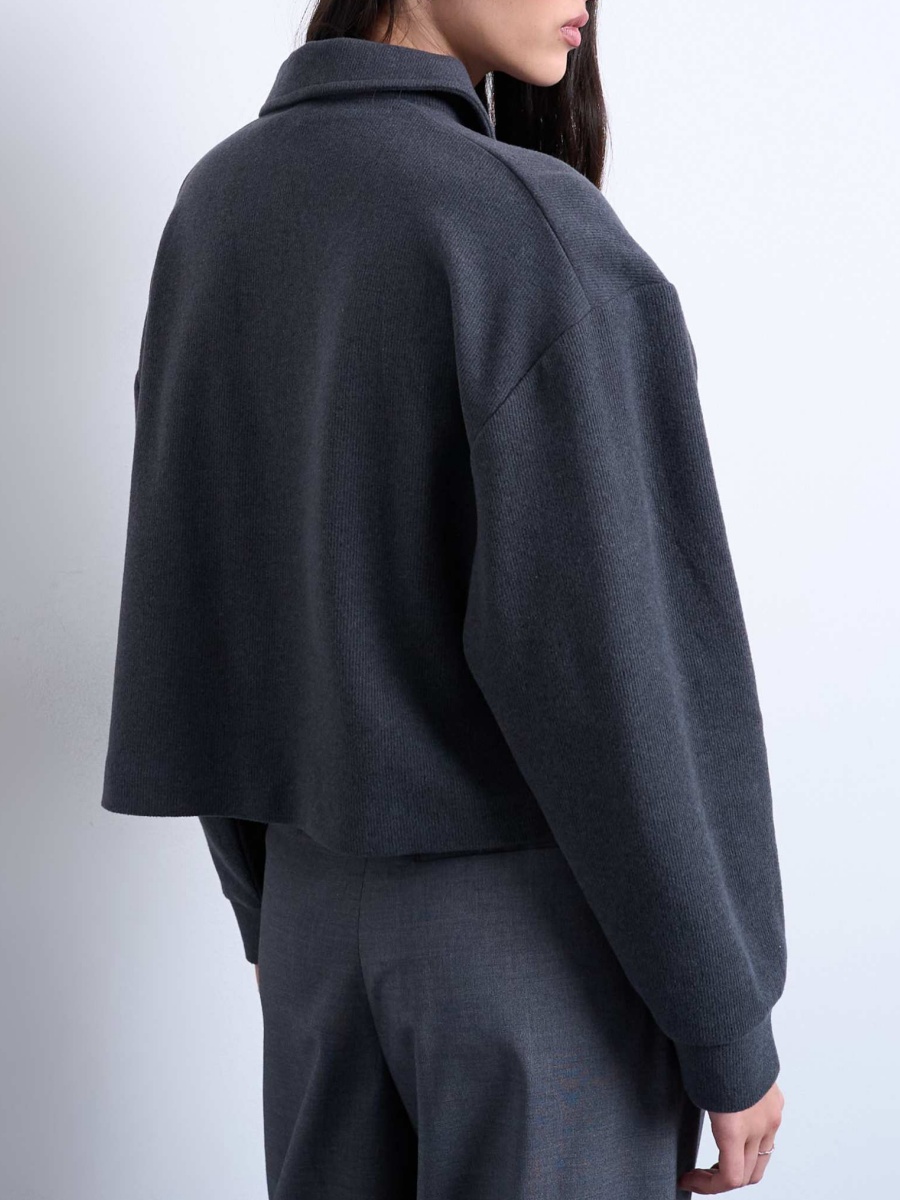 This polo is crafted from a soft, knit fabric. It features a partial-button closure, long sleeves and is cut with a boxy fit.